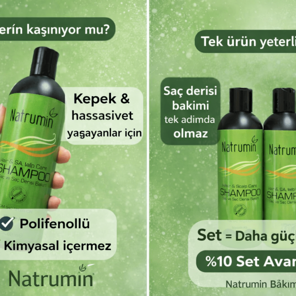 Natrumin Hair & Scalp Care Shampoo, saç ve saç derisinin doğal dengesini korumaya yardımcı olmak amacıyla geliştirilmiş bitkisel içerikli bir bakım şampuanıdır.